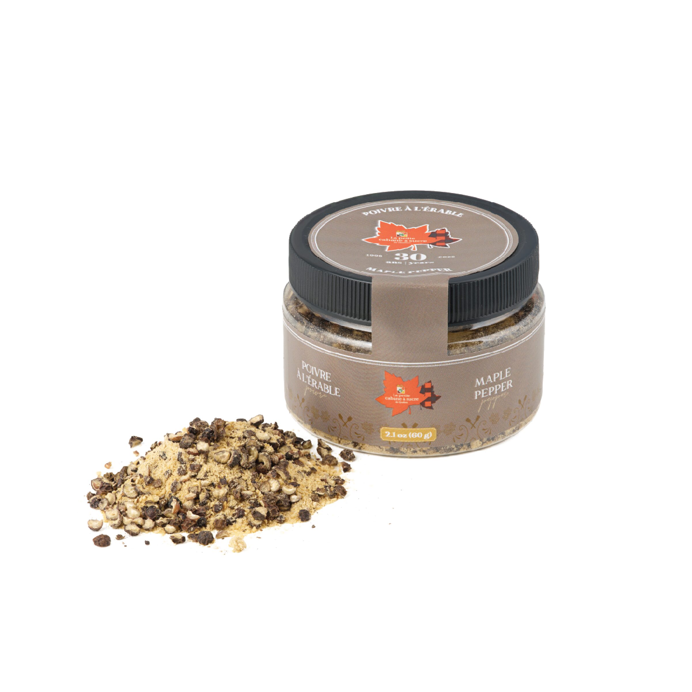 Ingrédients : Poivre noir craqué, sucre d’érable.
